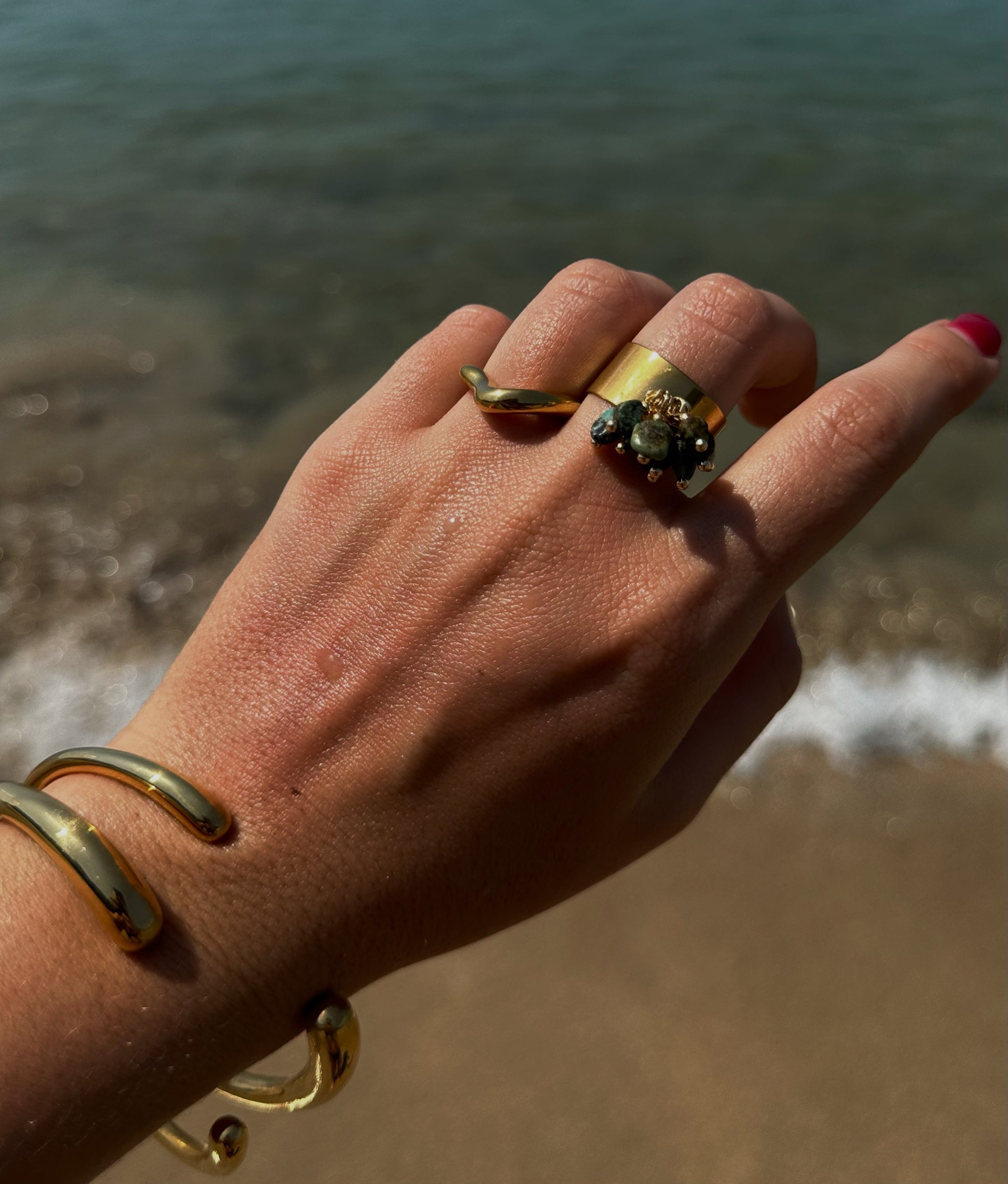 Bague en acier inoxydable doré à l'or fin et Turquoises.
