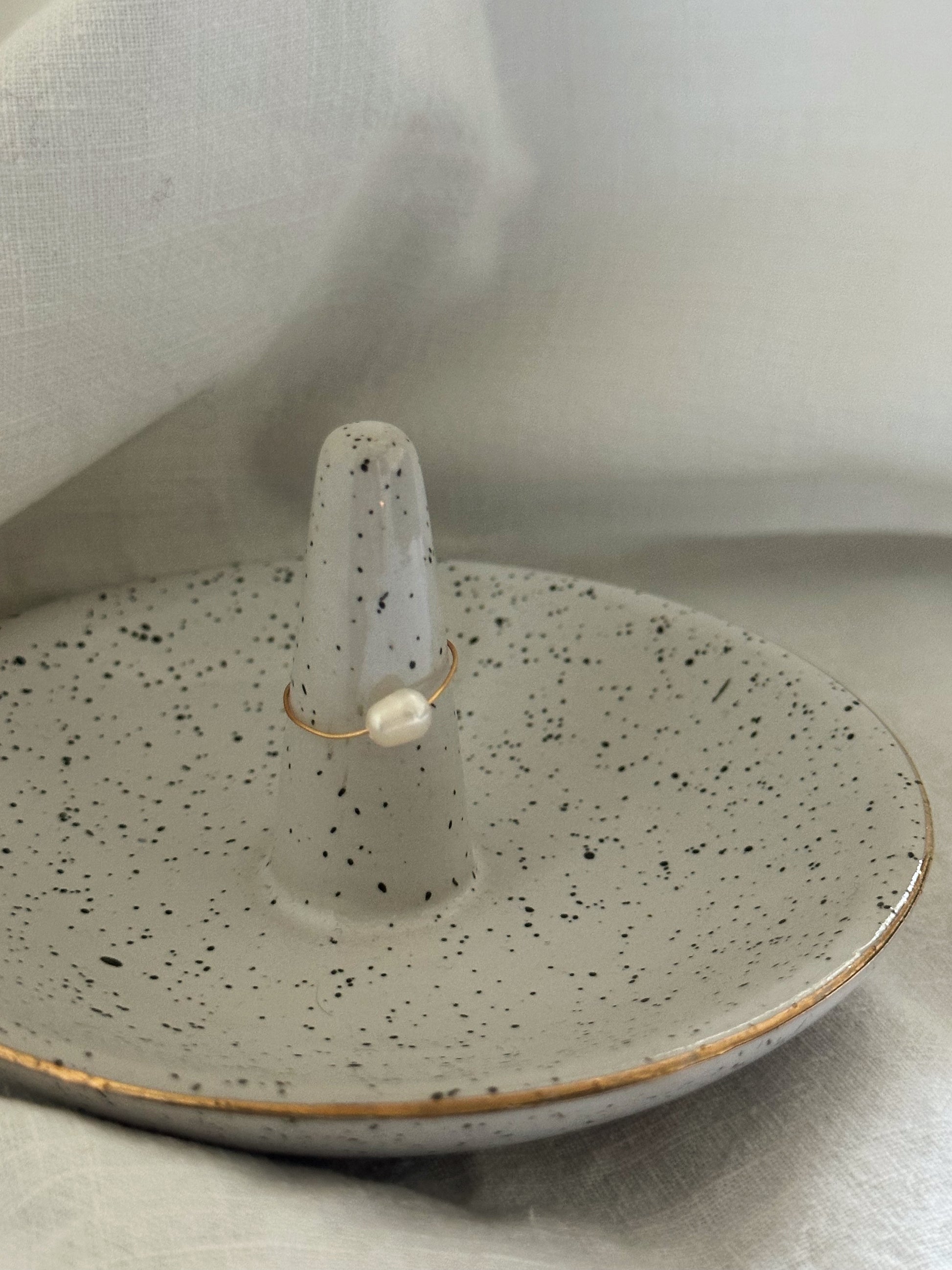 Bague en acier doré à l'or fin et perles d'eau douce.
