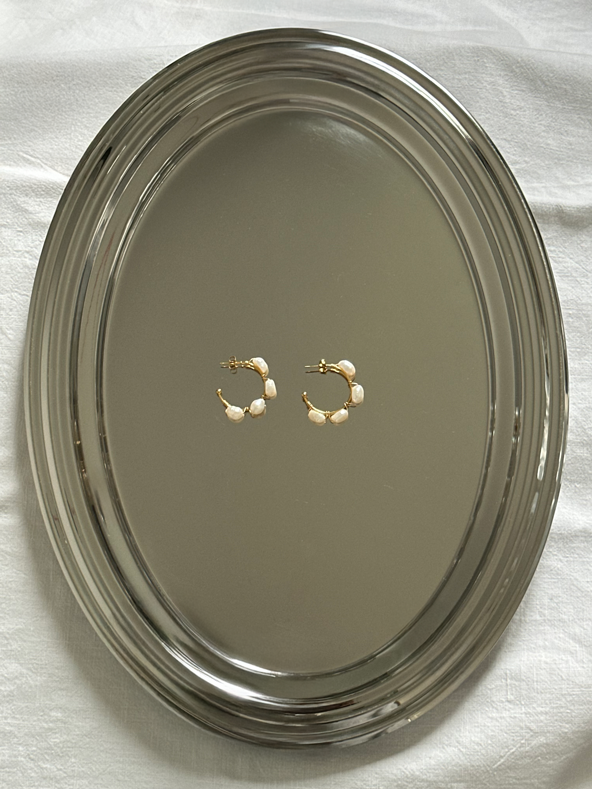 Boucles d'oreilles en acier inoxydable doré à l'or fin et perles d'eau douce.