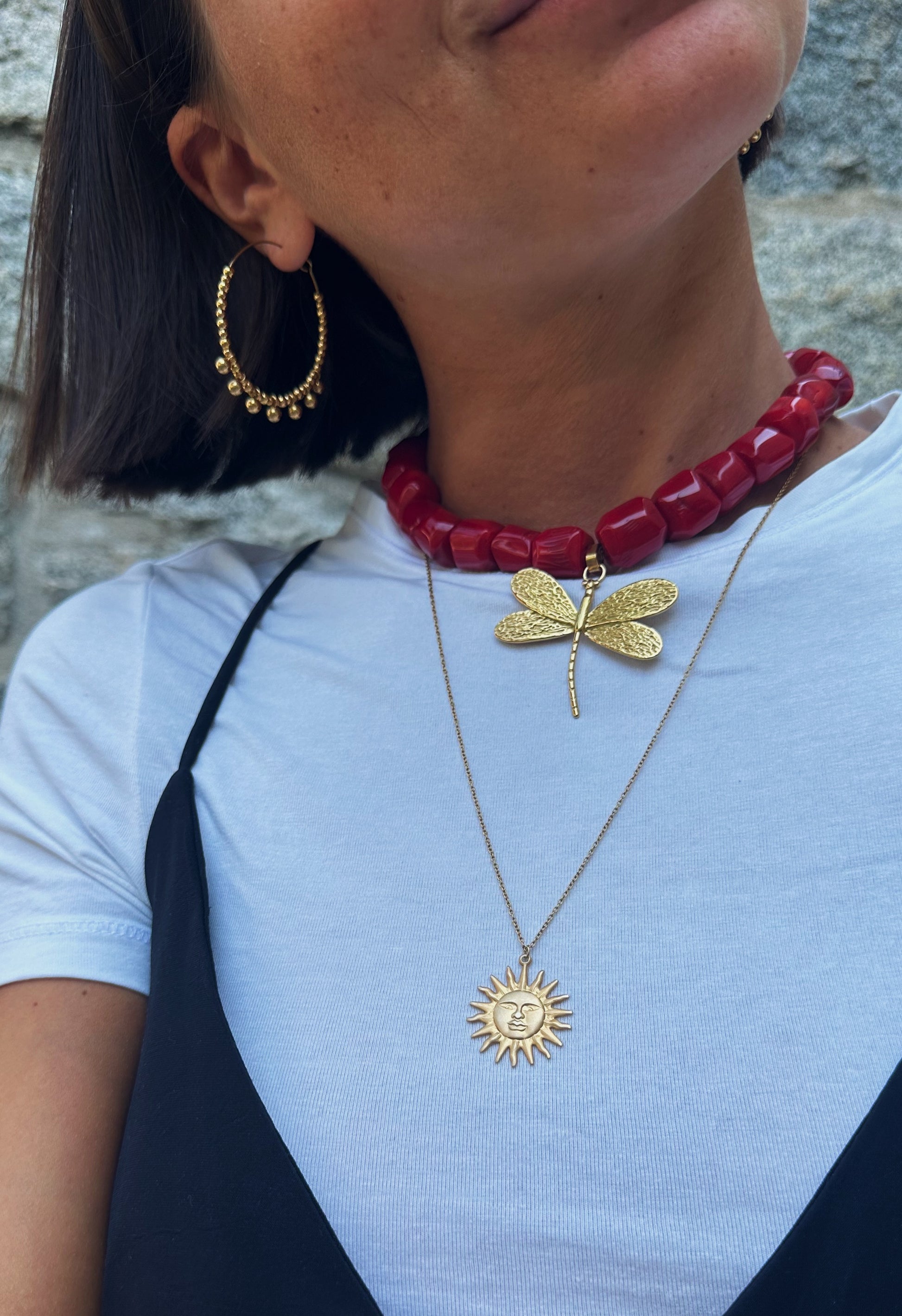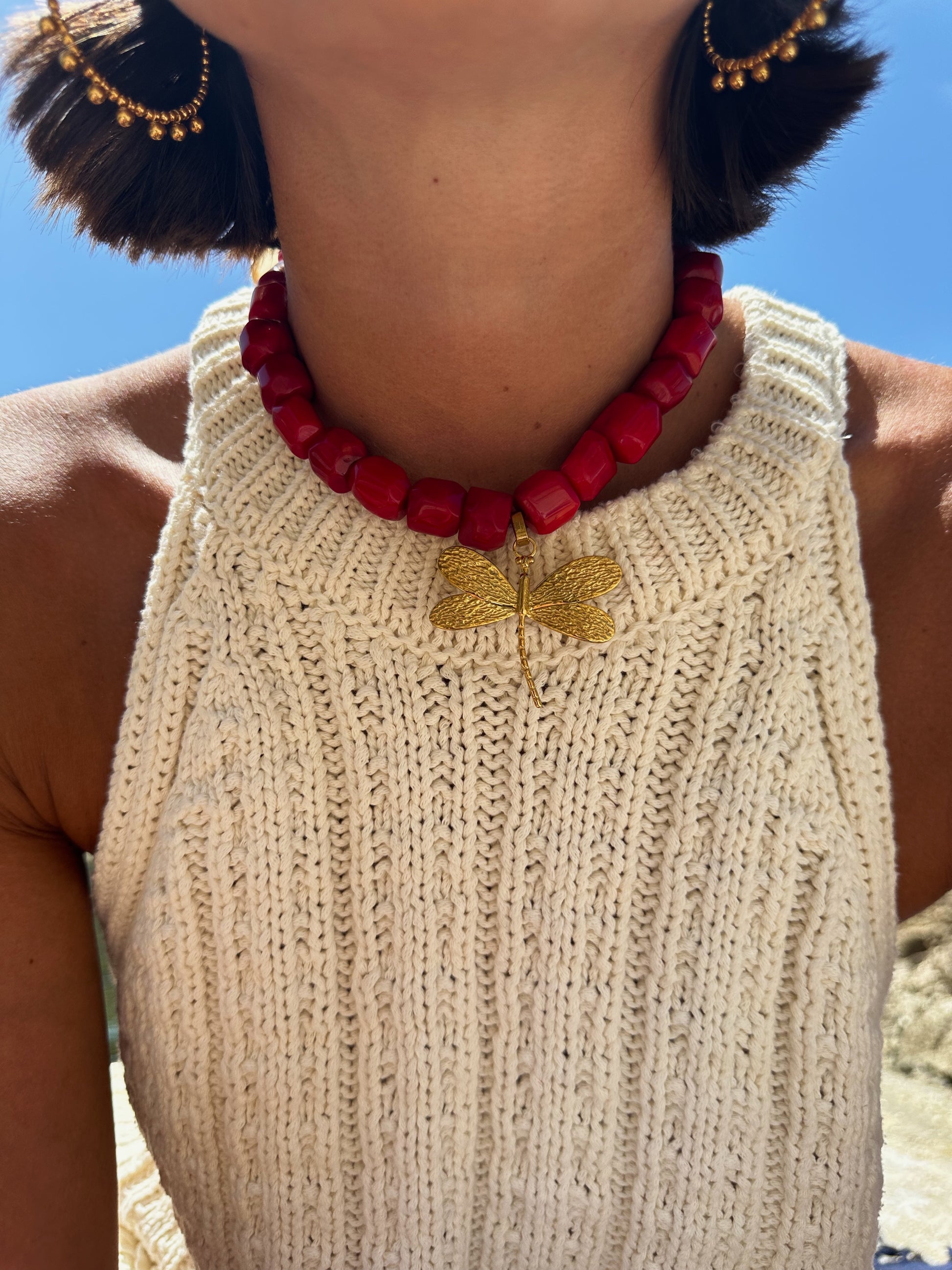 Collier en perles semi-précieuse et acier inoxydable doré à l'or fin.