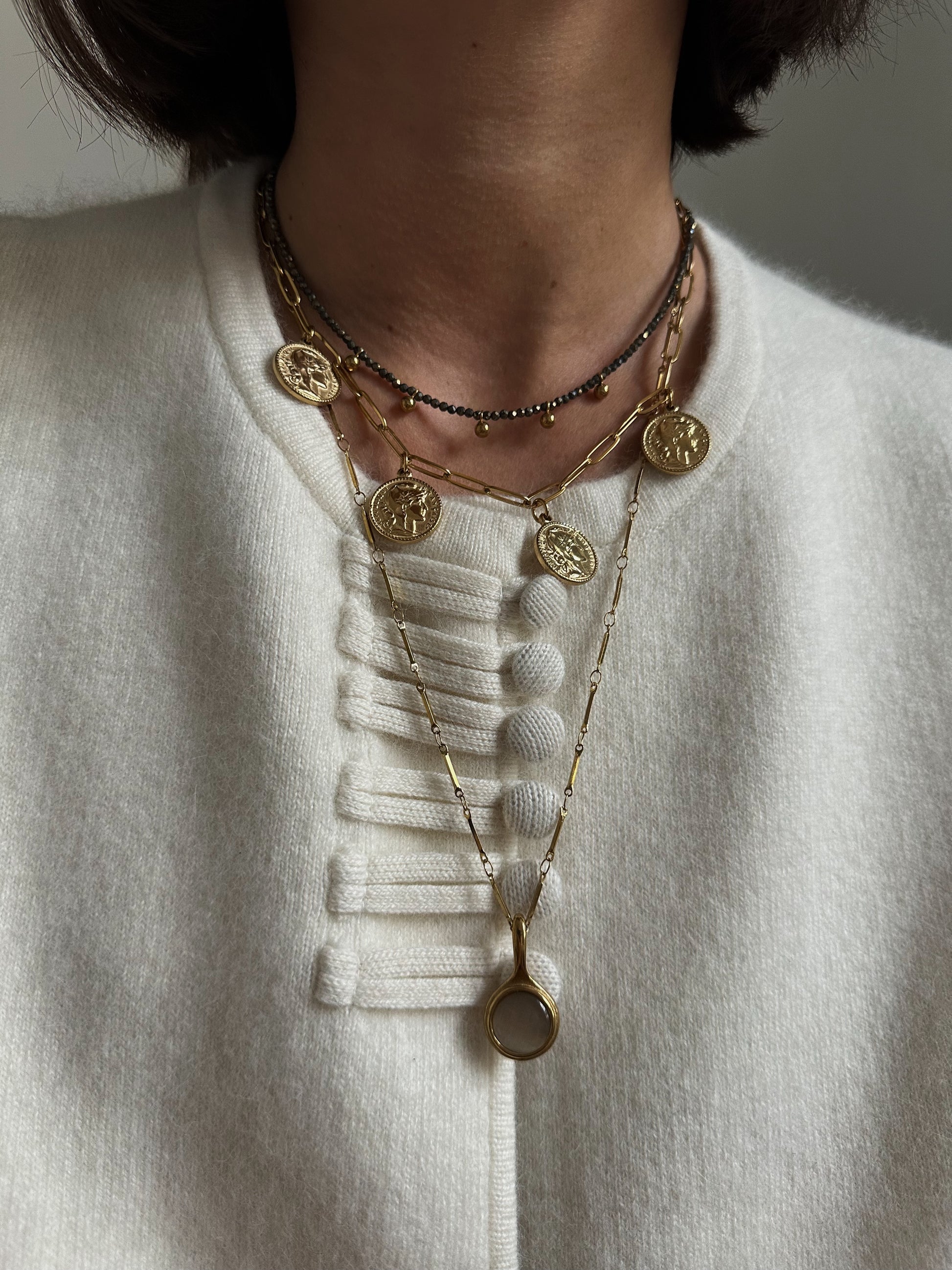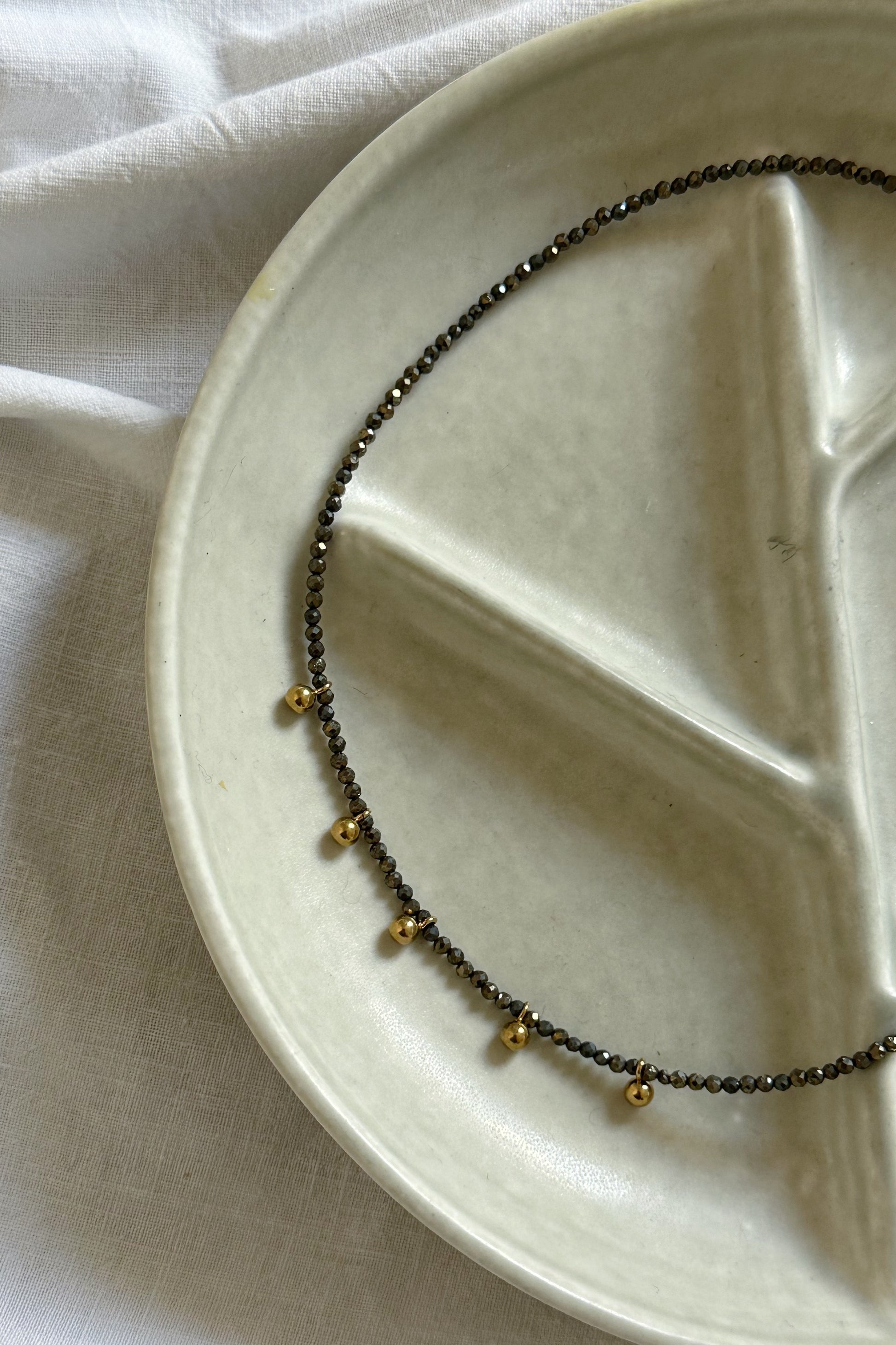 Collier en pyrite et acier inoxydable doré à l'or fin.